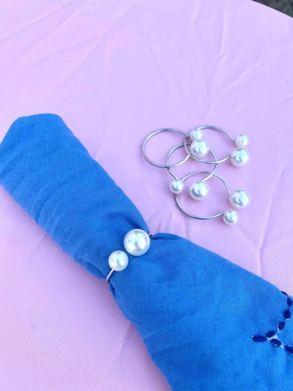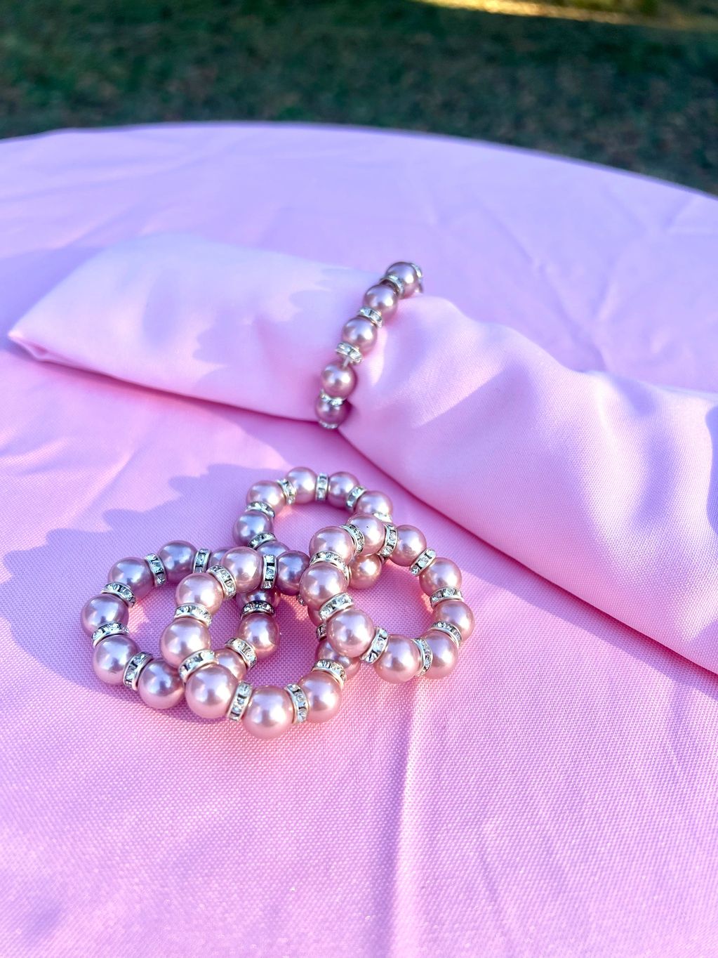 Rose pearl and "diamond" Napkin Rings