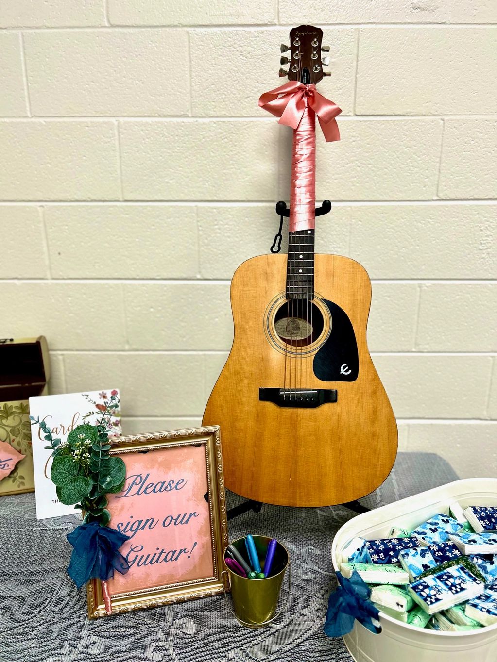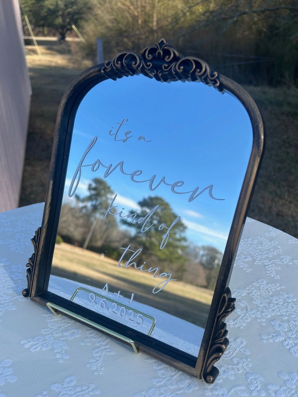 Includes your choice of black or gold easel. Customized with your choice of wording.